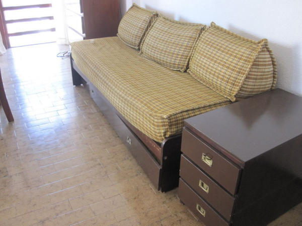 Capacidad y distribución: diván cama con carrito en el living y cama matrimonial en el dormitorio.