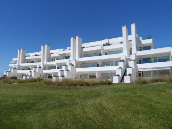 vista desde el jardin del complejo a los departamentos |